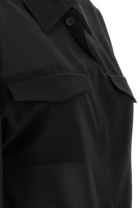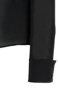 cod. 225CCH091CO01379999 Semi-transparent cotton blend shirt, front pockets, collar, side logo embroidery, long sleeves. Color: Black Size & Fit: True to size fit Composition: 50% cotton, 50% polyester Made in: Slovakia