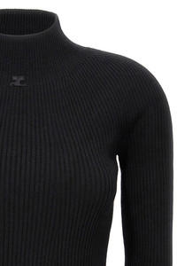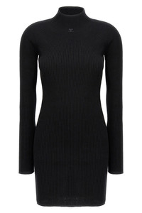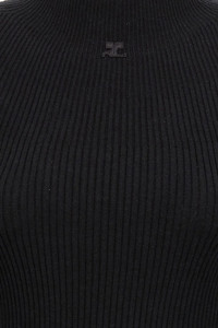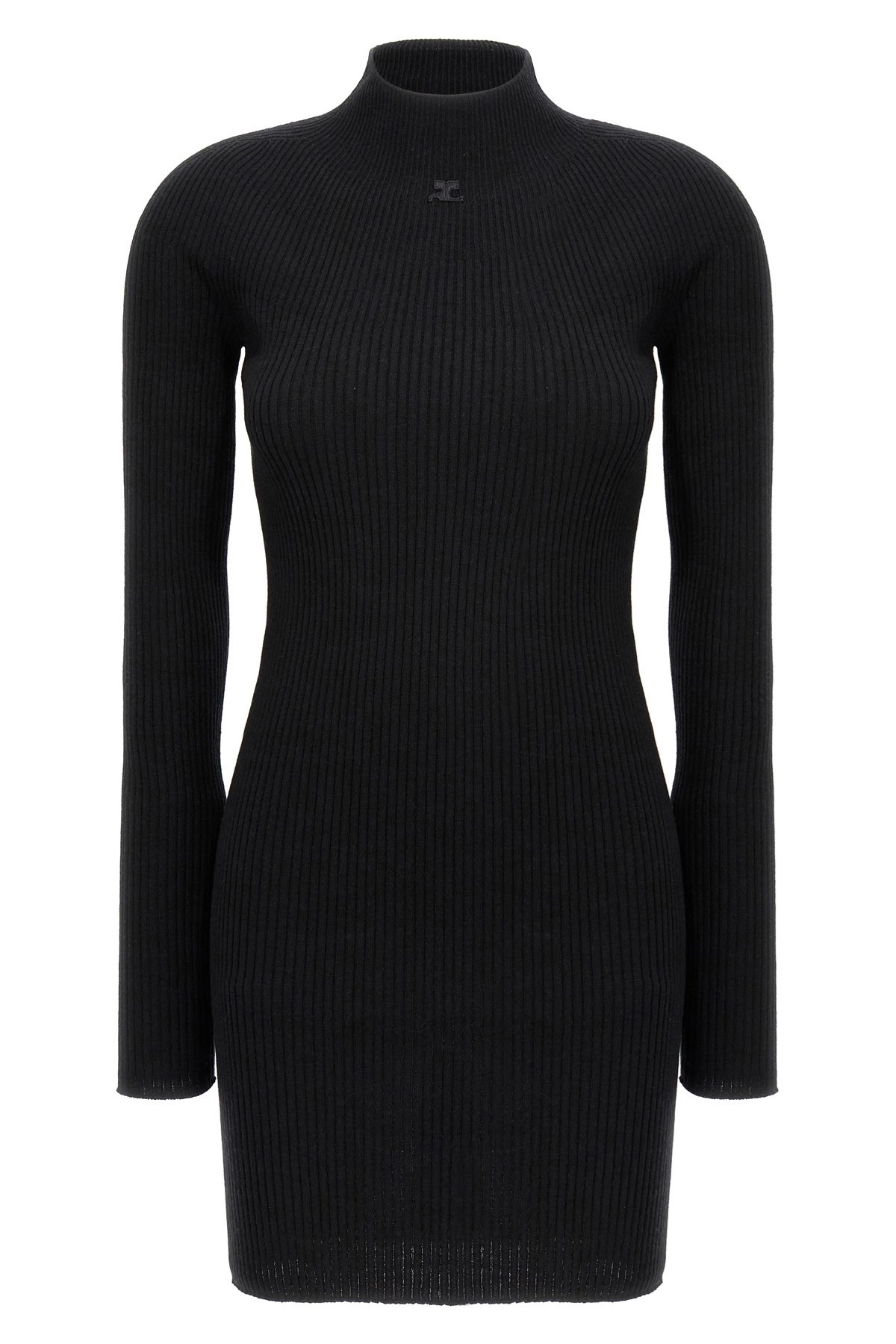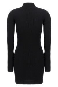 cod. 324MRO466FI00499999 'Solar Light Rib' ribbed cotton and wool blend dress, high neck, long sleeves, front logo. Color: Black Size & Fit: true to size fit Composition: 80% cotton, 20% wool Made in: Italy
