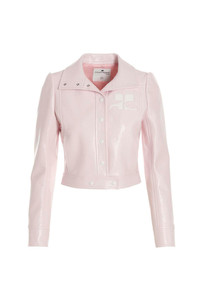 cod. PERCBL005VY00145009 Vinyl' shiny vinyl jacket with button closure, front logo, shirt collar, pockets and long sleeves. Color: Pink Material: 88% cotton 10% polyurethane 2% elastane Made in: Slovakia Size &Fit: True to size fit French size