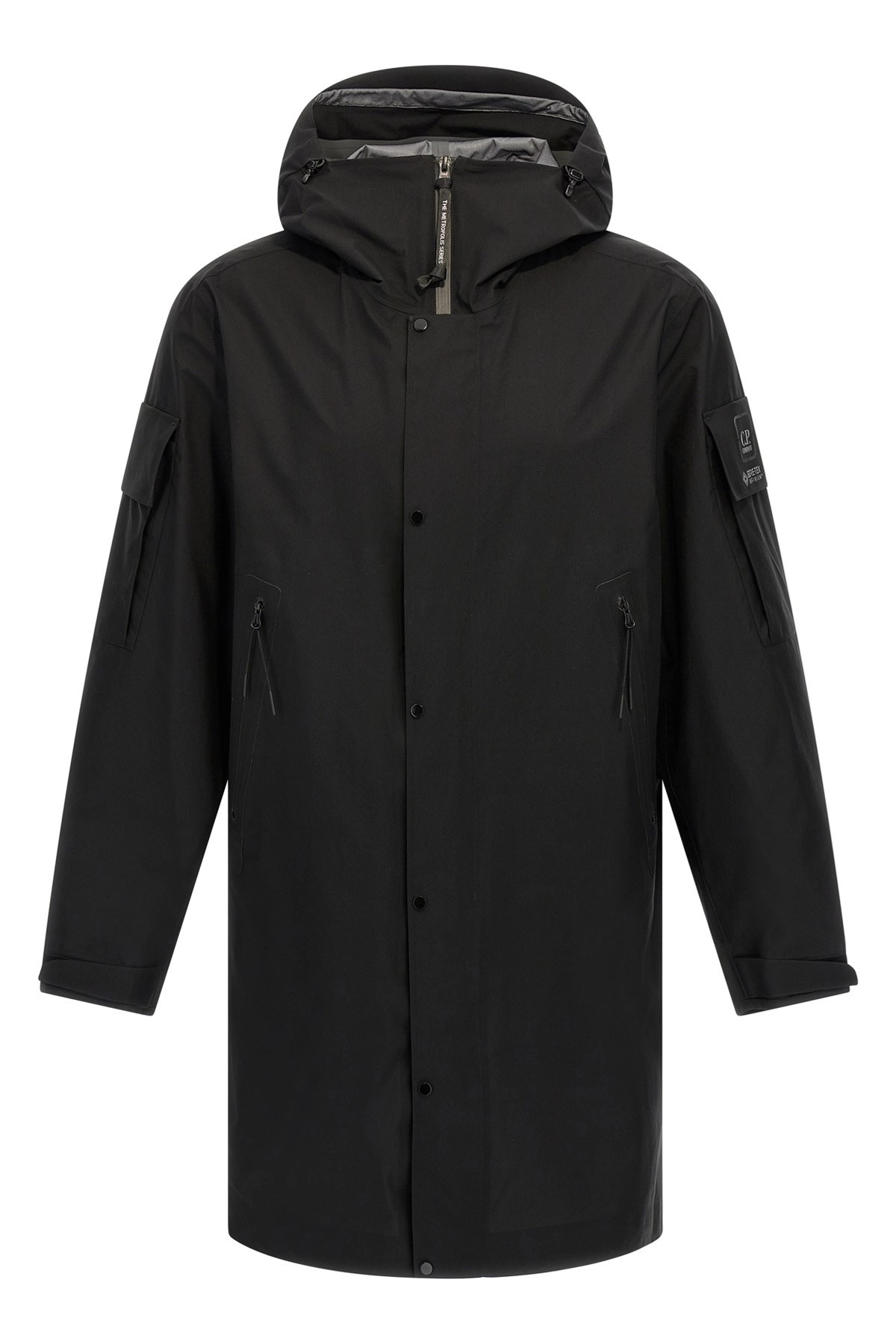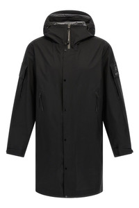 cod. 18CLOW006A110031A999 Water-repellent GORE-TEX INFINIUM™ 'The Metropolis Series' parka with high neck, hood, zip and snap button closure, adjustable drawstring pockets at the waist, long sleeves with adjustable cuffs and logo print. Color: Black Size & Fit: true to size fit Composition: 100% polyamide Made in: China