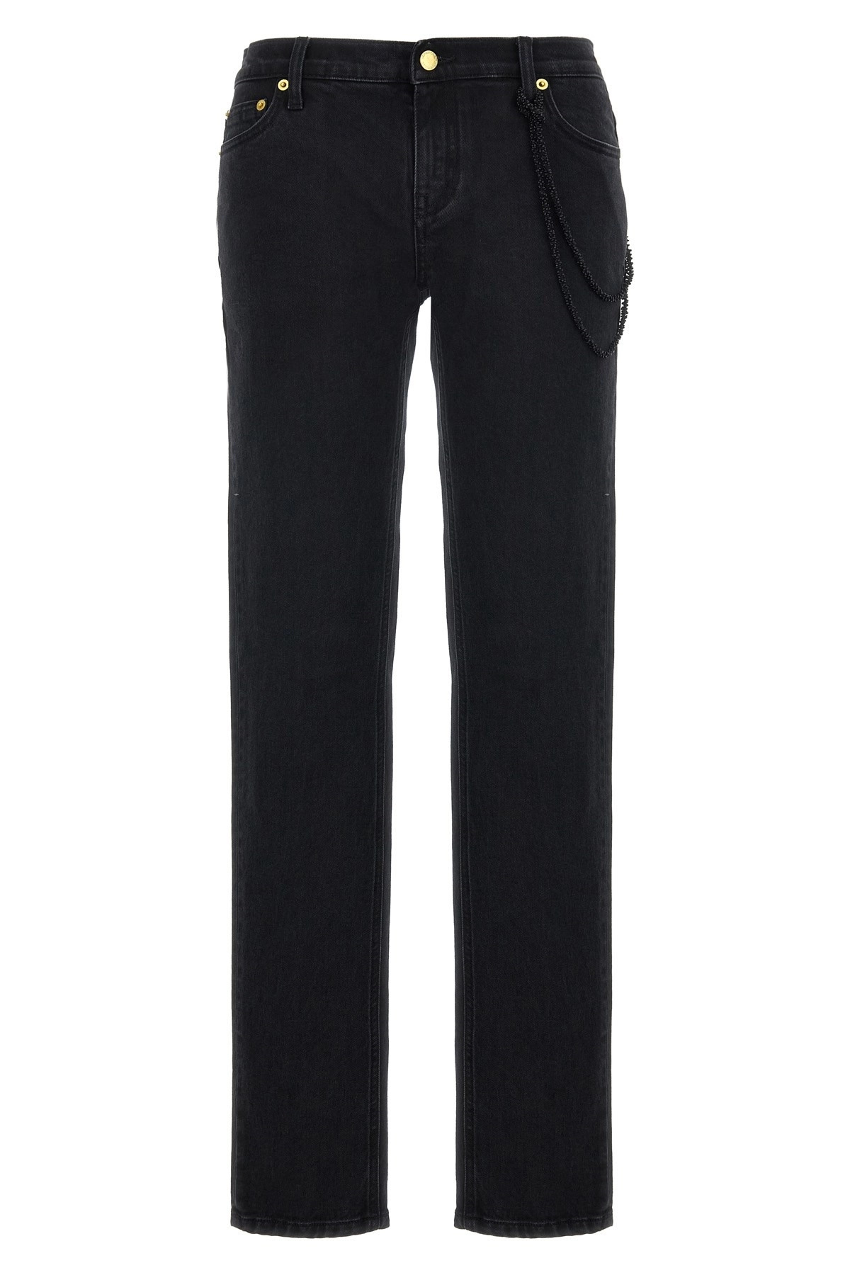 cod. WTR64DBK05W100W100 'Michelle' cotton denim jeans with zip and button closure, five pockets, laced detail with beads. Color: Black Size & Fit: Skinny fit Composition: 99% cotton, 1% elastane Made in: Italy