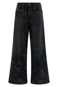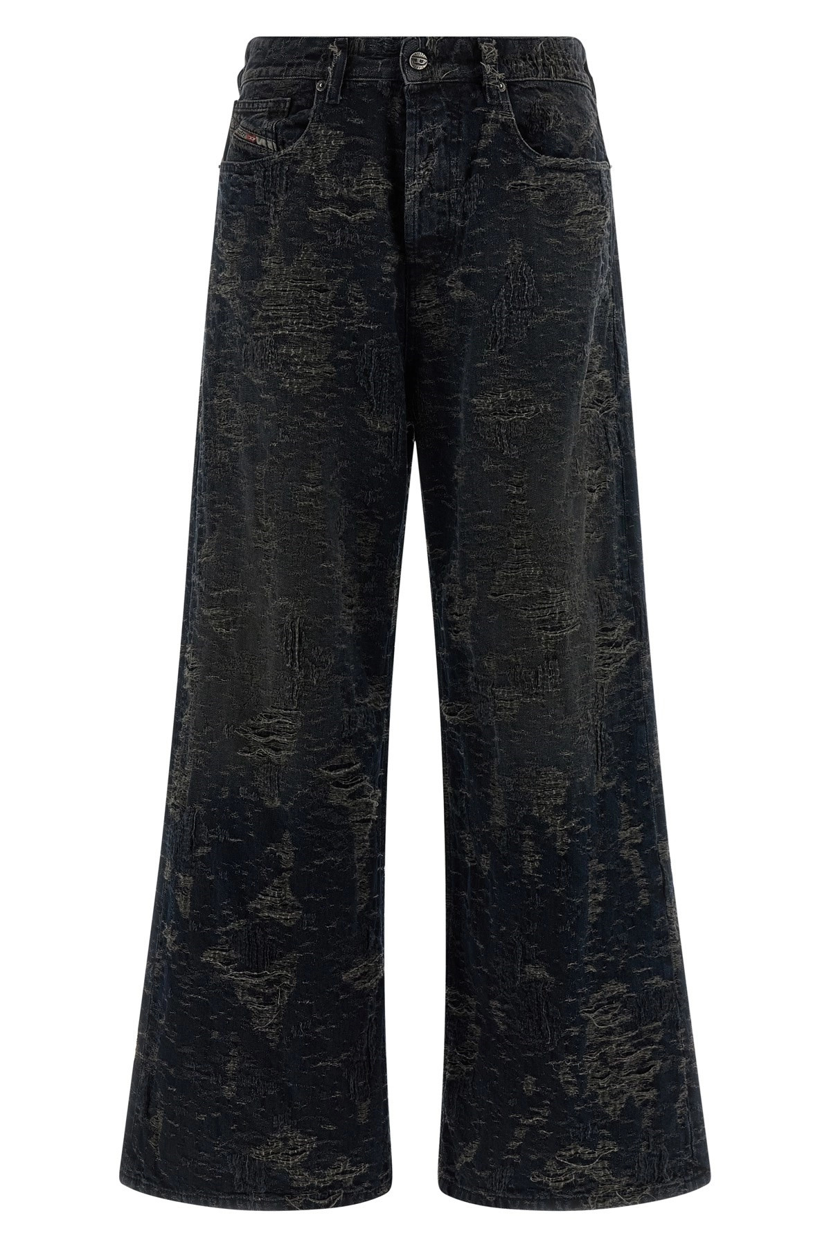 cod. A06926007BV02 '1996 D-SIRE' destroyed over-dyed effect cotton denim jeans with five pockets, straight leg, button closure. Color: Gray Size & Fit: True to size fit Composition: 100% cotton Made in: Tunisia