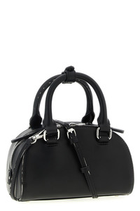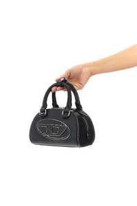 cod. X10369P8630HA578 '1dr Dome' bowling handbag in leather-effect fabric with a used finish, high-frequency embossed 'Oval D' logo, double fixed handle, top zip closure, rigid base with metal feet, adjustable and removable shoulder strap. Color: Black Size & Fit: W 19 x H 13 x D 11 cm Composition: 59% polyurethane, 41% polyester Made in: China