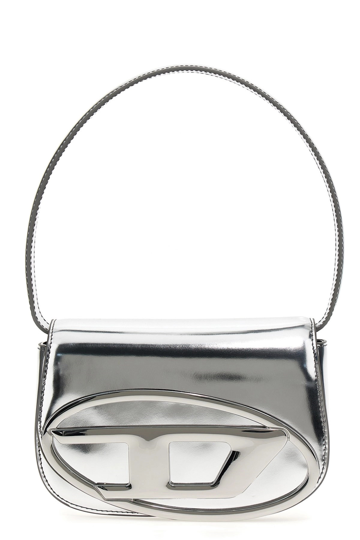 cod. X08396PS202H0535 Laminated leather '1DR' shoulder bag, flap closure with metallic Oval D maxi logo, adjustable and removable shoulder strap. Color: Silver Size & Fit: W 20.5 x H 13.5 x D 6.5 cm Composition: 100% cow leather Made in: China