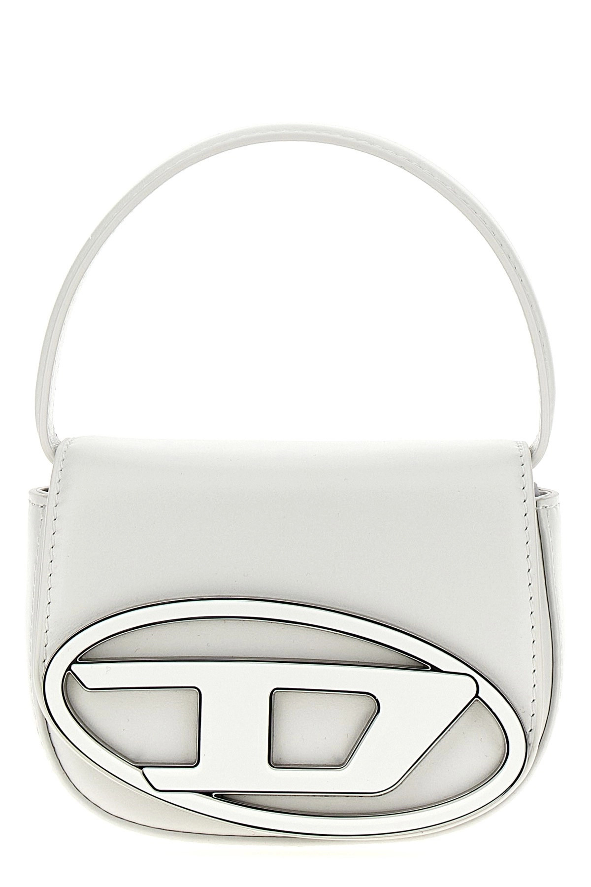 cod. X08709PR818T1003 1DR XS' leather handbag with front metal logo, magnetic closure, and a leather handle. Color: White Size & Fit: W 12 x H 10 x D 4.5 cm Composition: 100% cow leather (bos taurus) Made in: China