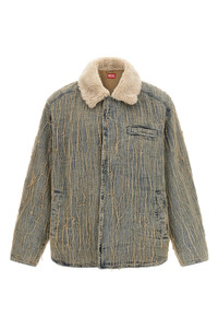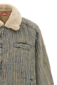 cod. A192760CMBZ01 'D-Ivar-S' jacquard stone wash cotton denim jacket with floating threads, fuzzy shearling shirt collar, front zip closure, pockets, long sleeves with dropped shoulders, nylon lining. Color: Light Blue Size & Fit: Relaxed fit Composition: 95% cotton, 5% elastane Made in: Turkey