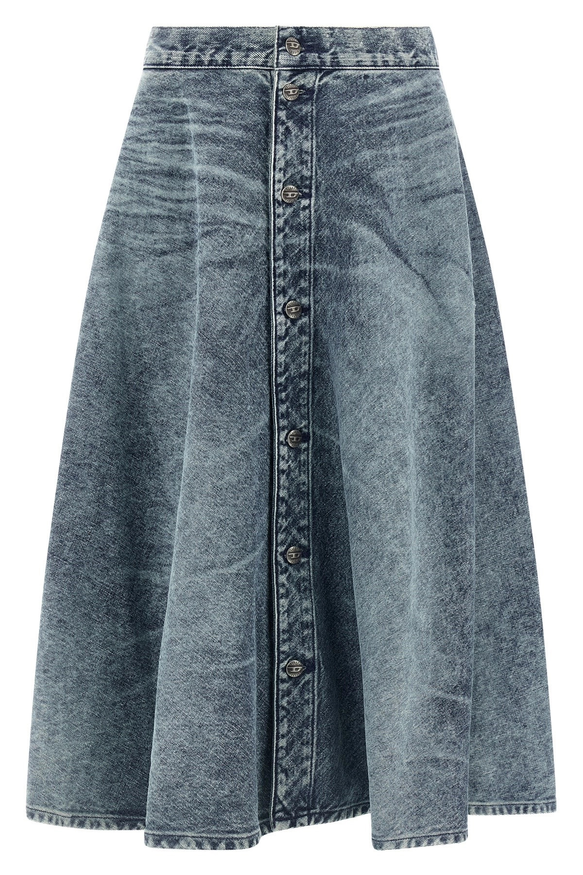 cod. A21423007DA01 'De-Annet-B-Fsh' skirt in stonewashed cotton denim with used effect, wheel model, metal button closure with front engraved logo, unlined, back logo tag. Color: Light Blue Size & Fit: true to size fit Composition: 80% cotton 20% ca Made in: Tunisia