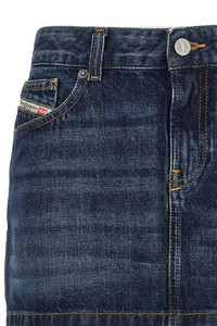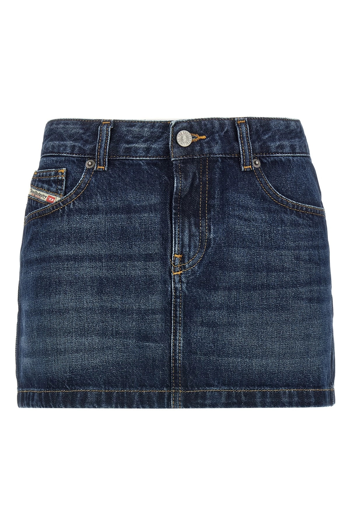 cod. A0493509I2701 'De-Ron' low-waisted mini skirt in cotton denim with front zip and button closure, five pockets, back logo tag. Color: Blue Size & Fit: true to size fit Composition: 100% cotton Made in: Tunisia