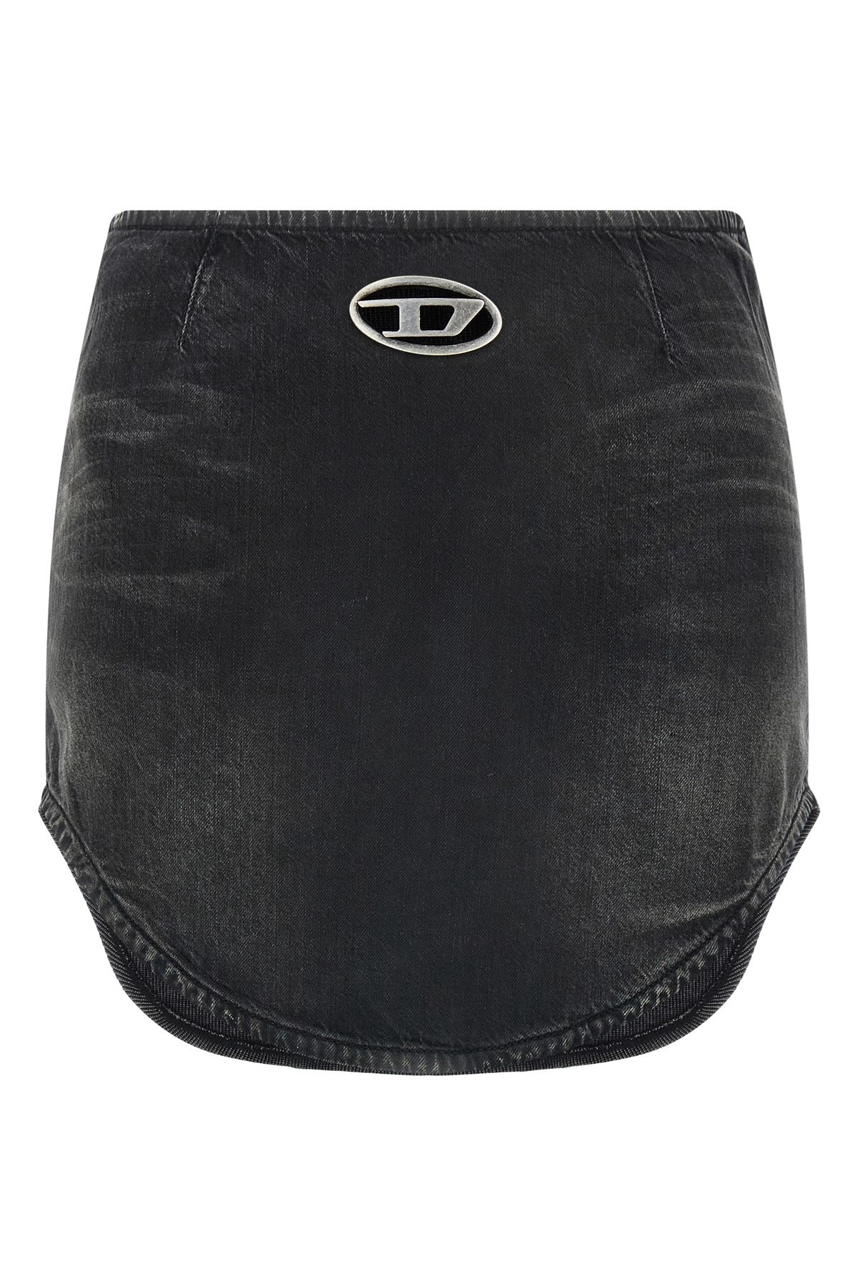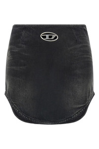 cod. A194020CEBC02 Mini 'De-Vany-S' skirt in stonewashed denim and cotton pique, front metal cut-out logo, side zip closure, rounded hem. Color: Gray Size & Fit: true to size fit Composition: 50% co, 40% te, 10% md Made in: Italy
