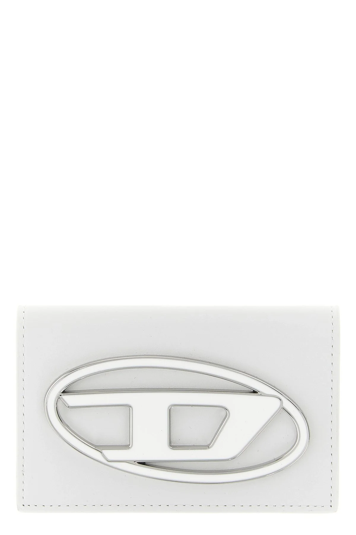 cod. X10386PR818T1003 'Holi-D' smooth leather card holder, flap closure with snap button, tone-on-tone metal Oval D logo on the front, back pocket. Color: White Size & Fit: W 11.5 x H 7.5 x D 2 cm Composition: 100% polyurethane Made in: China