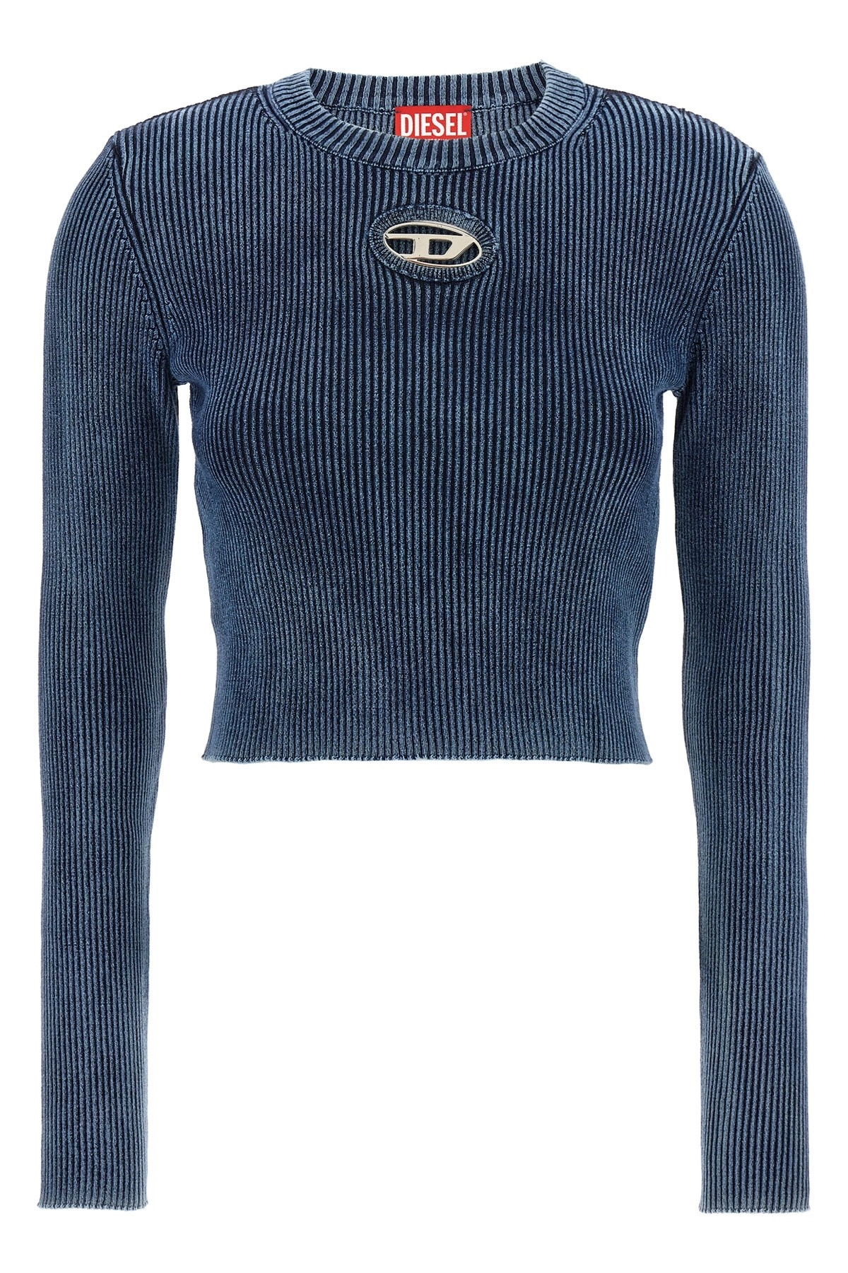 cod. A148100ANAH8AT 'M-Anchor-A' ribbed cotton sweater with front metal buckle, crew neck, long sleeves. Color: Blue Size & Fit: Slim fit Composition: 100% cotton