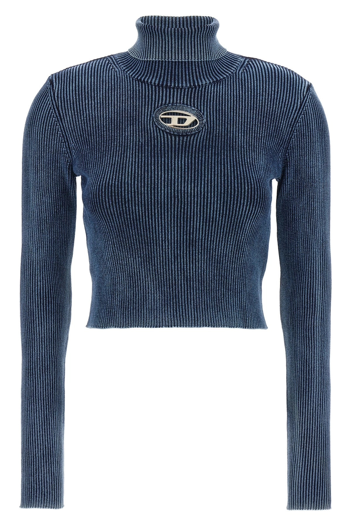 cod. A148110ANAH8AT 'M-Anchor-A-Tn' ribbed cotton sweater with front metal buckle, high neck, long sleeves. Color: Blue Size & Fit: Slim fit Composition: 100% cotton