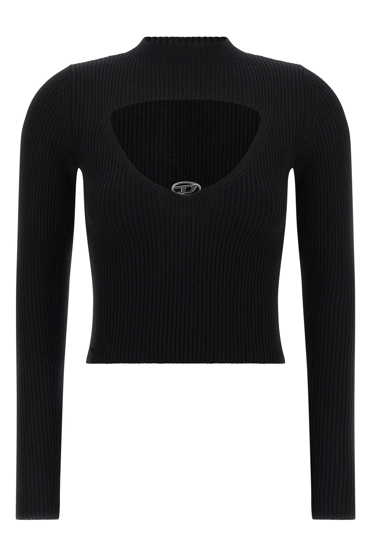 cod. A189040PLBF9XX 'M-Olina' ribbed knit wool sweater, crew neck, back cut-out detail with metal Oval-D applique, long sleeves. Color: Black Size & Fit: Slim fit Composition: 100% wool Made in: Italy