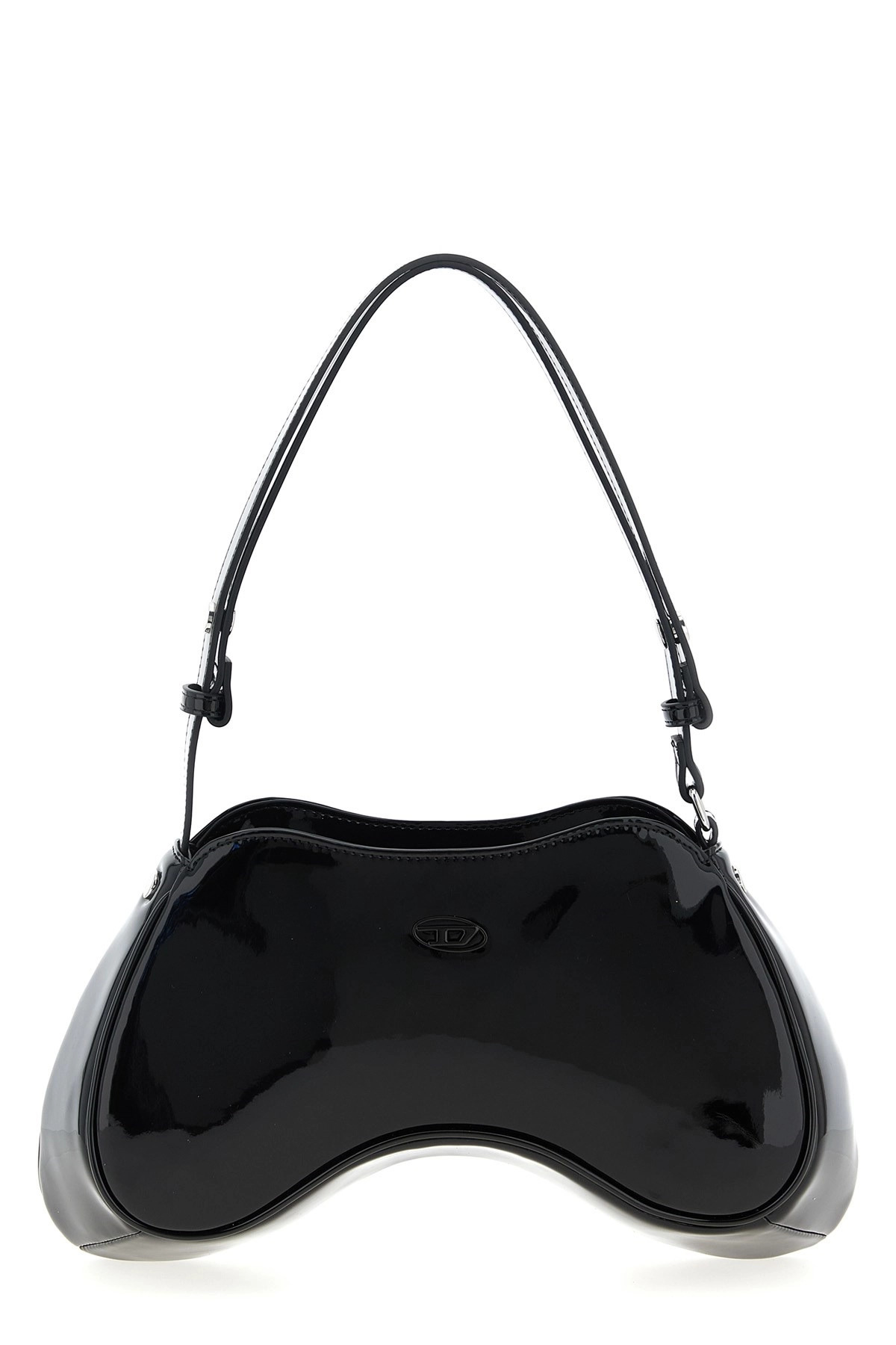 cod. X10201P6255HA881 'Play Shoulder' smooth leather shoulder bag with semi-gloss finish, front metal logo, top zip closure, adjustable handle. Color: Black Size & Fit: W 33 x H 19 x D 7 cm Composition: 100% leather Made in: China