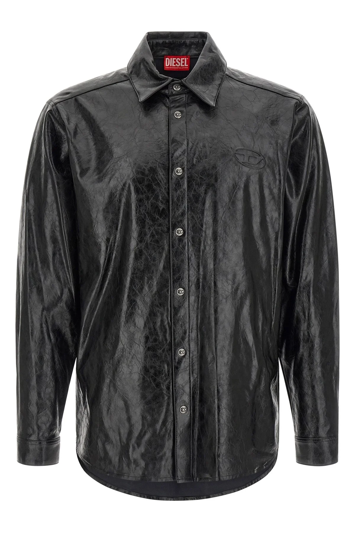 cod. A200210QMBU9XX 'S-Simply-Qmbu' viscose fabric shirt covered with a vintage leather-effect textured finish, embossed 'Oval D' logo and front snap button closure, long cuffed sleeves and rounded hem. Color: Black Size & Fit: true to size fit Composition: 100% viscose Made in: China