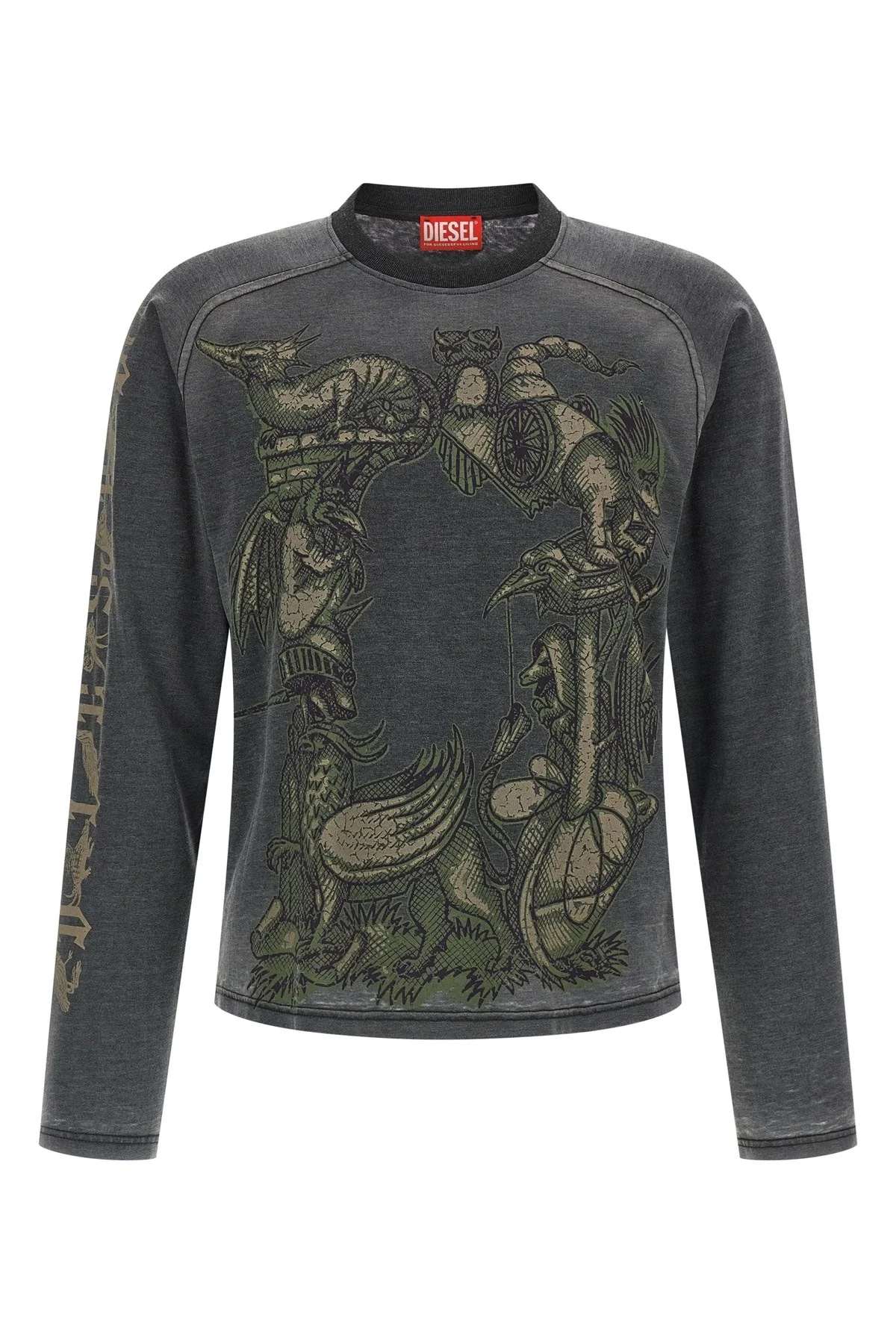 cod. A230020WECN900 'T-Jori-A' T-shirt in light cotton blend with worn effect, front print, crew neck, long raglan sleeves. Color: Gray Size & Fit: true to size fit Composition: 60% cotton, 40% polyester Made in: Bulgaria