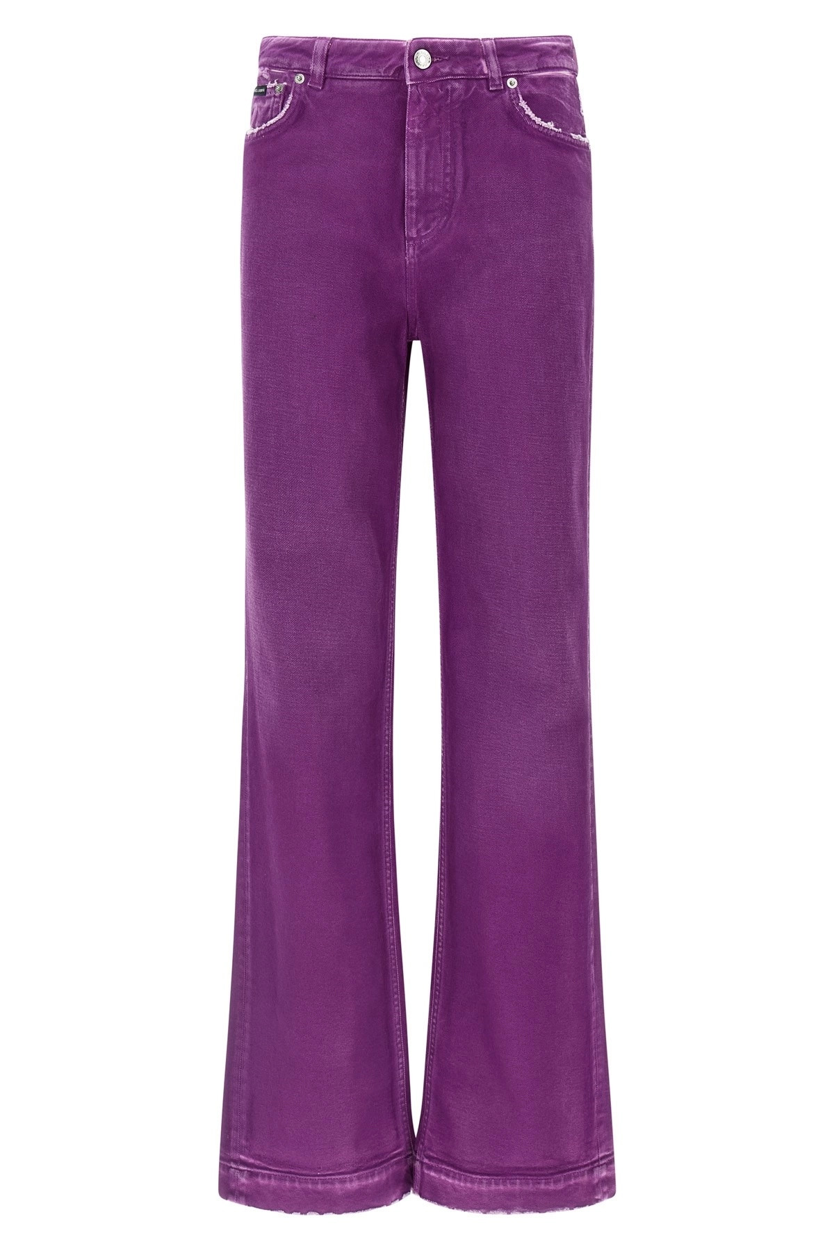 cod. FTC79DG8NO6S9001 5-pocket pants in garment-dyed cotton denim with high waist and straight leg, front zip and button closure. Color: Fuchsia Size & Fit: True to size fit Composition: 100% cotton Made in: Italy