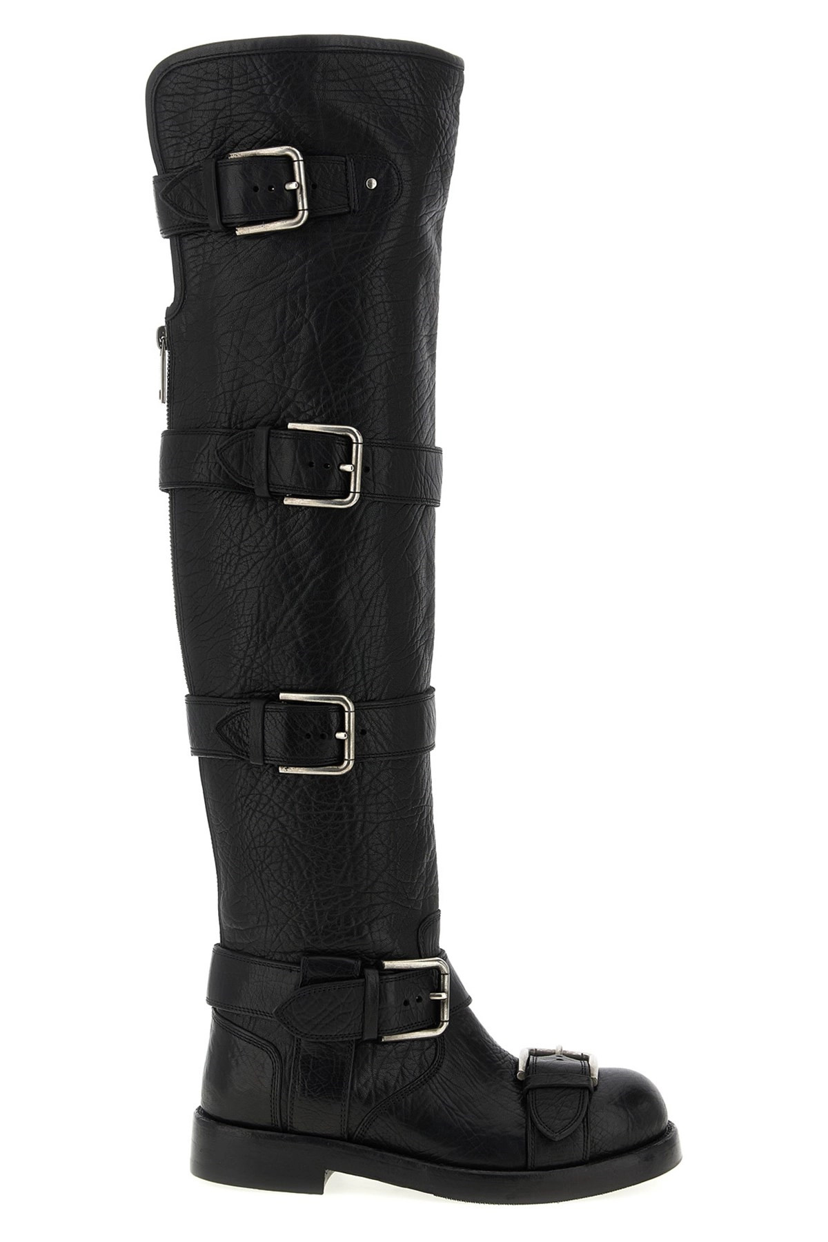 cod. CU1239AW35280999 'Bernini' hammered horse leather boots, biker-inspired model, rounded toe, adjustable straps, back zip closure, leather sole with non-slip VIBRAM® rubber island. Color: Black Size & Fit: EU WOMEN Composition: 100% horse leather Made in: Italy
