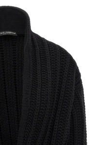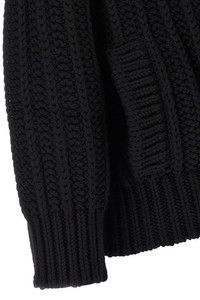 cod. FXVCWTJCVZ2N0000 Coarse wool cardigan with reverse rib, shawl collar with two front end button closure, long sleeves with cuffs and dropped shoulder. Color: Black Size & Fit: oversized fit Composition: 100% virgin wool Made in: Italy