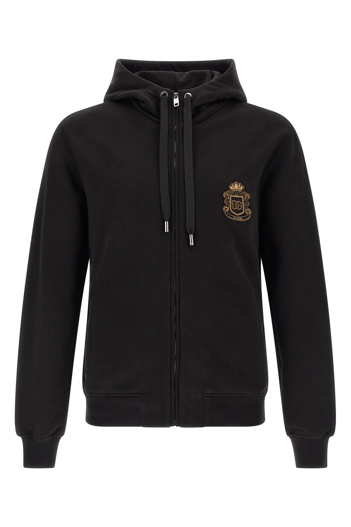cod. G9BGDZG7PZTN0000 Gauze cotton hoodie, embroidered emblem and front zip closure, pockets, long sleeves with cuffs and dropped shoulders, band on the hem. Color: Black Size & Fit: true to size fit Composition: 100% cotton Made in: Italy