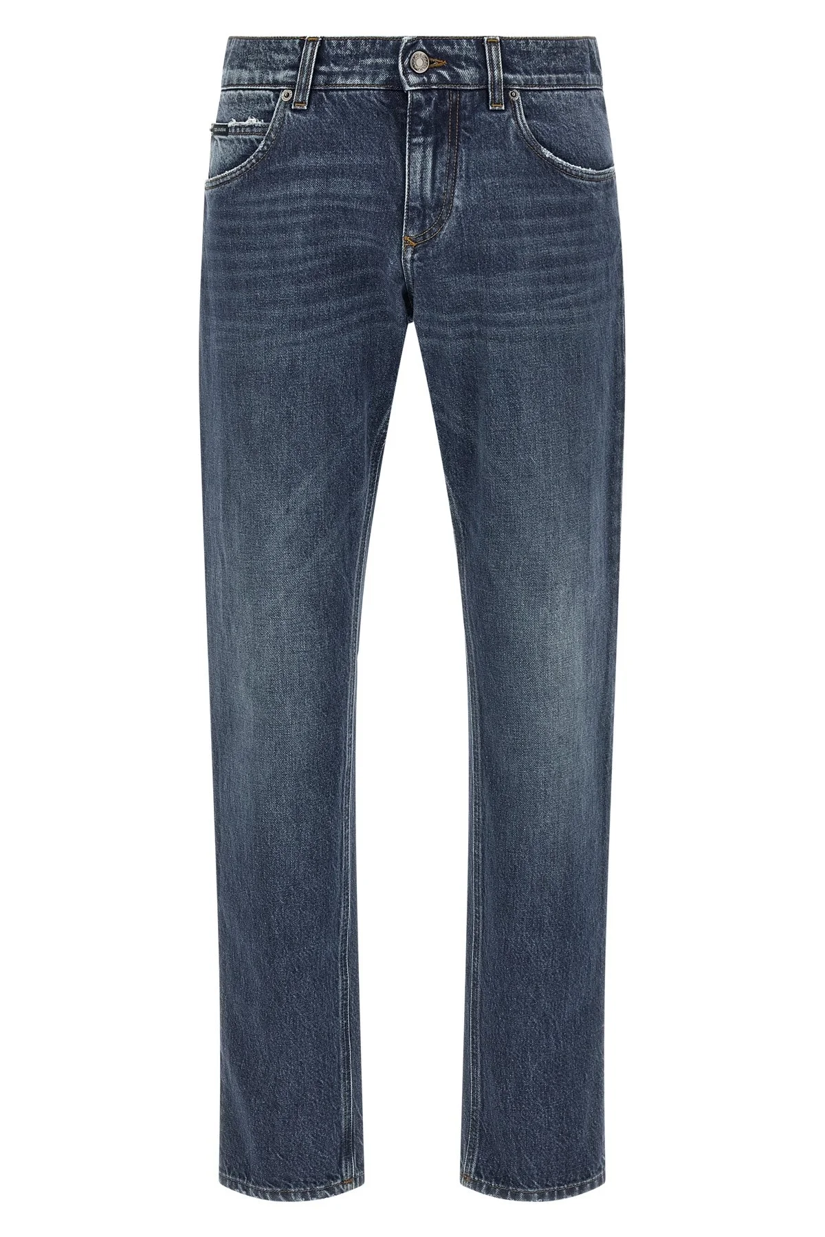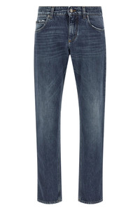cod. GYJCCDG8NZ5S9001 Used-effect stone washed cotton denim jeans, contrast stitching, front zip and button closure, five pockets, leather logo tag and galvanic tag with engraved logo on the back. Color: Blue Size & Fit: true to size fit Composition: 100% cotton Made in: Italy