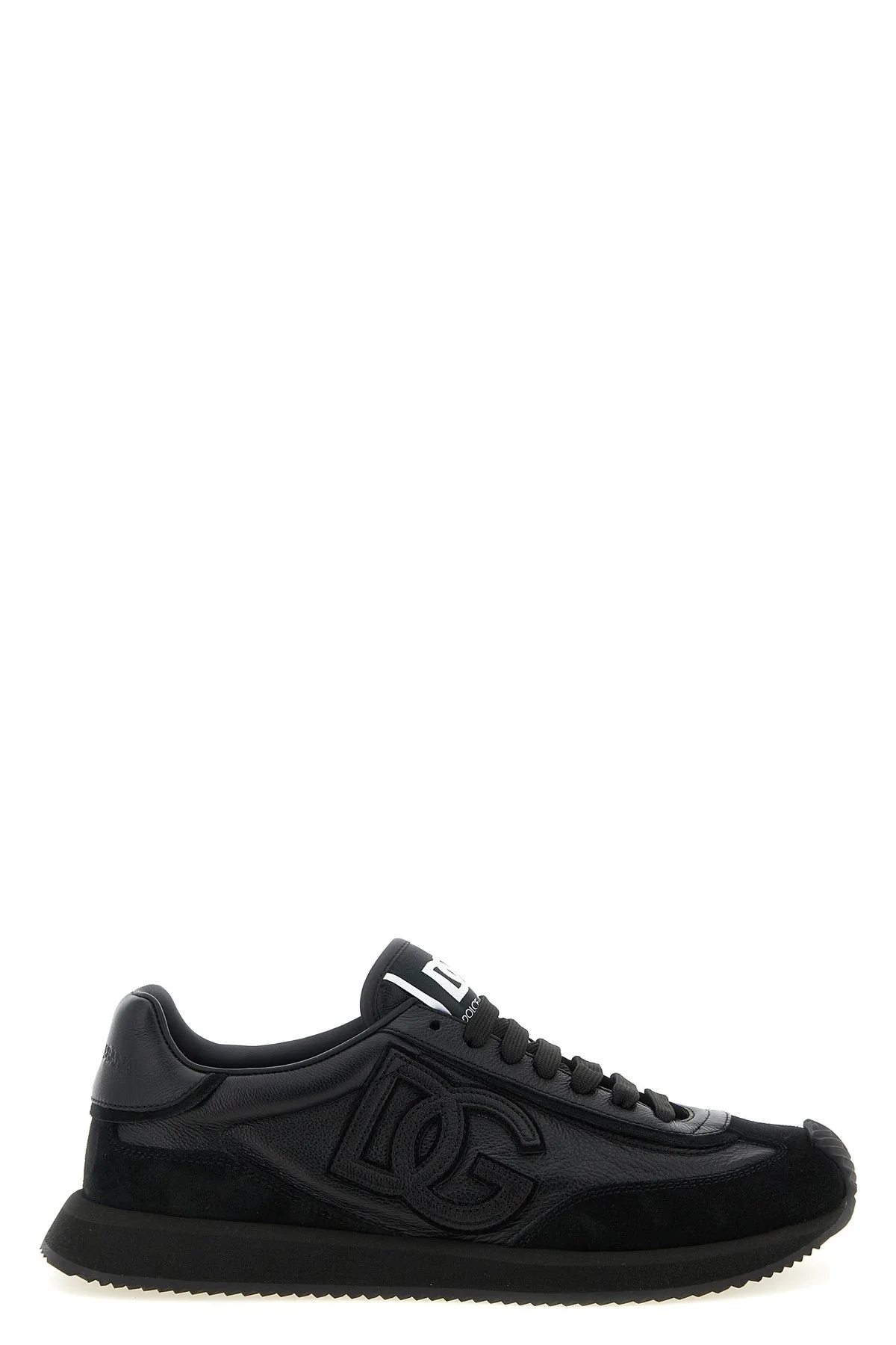 cod. CS2288A01248B956 'DG Cushion' tone-on-tone calf leather and suede sneakers, side logo patch, logo patch tongue, embossed logo on the heel, felt insole, lace-up closure, thermoformed foam fussbett insole wrapped in leather, micro and TPU sole and toe cap. Color: Black Size & Fit: EU MEN Composition: 100% calfskin leather (Bos Taurus) Made in: Italy