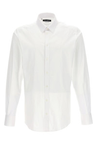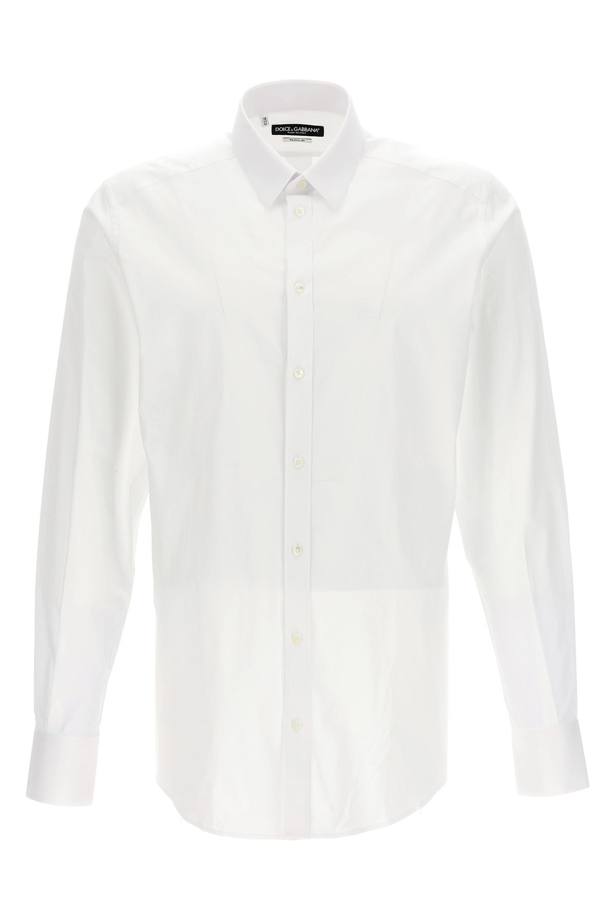 cod. G5EJ0TGG826W0800 DG Essential shirt in stretch cotton with gold label inside, button closure, and long sleeves with cuffs. Color: White Size & Fit: true to size fit collar size Composition: 97% co, 3% ea