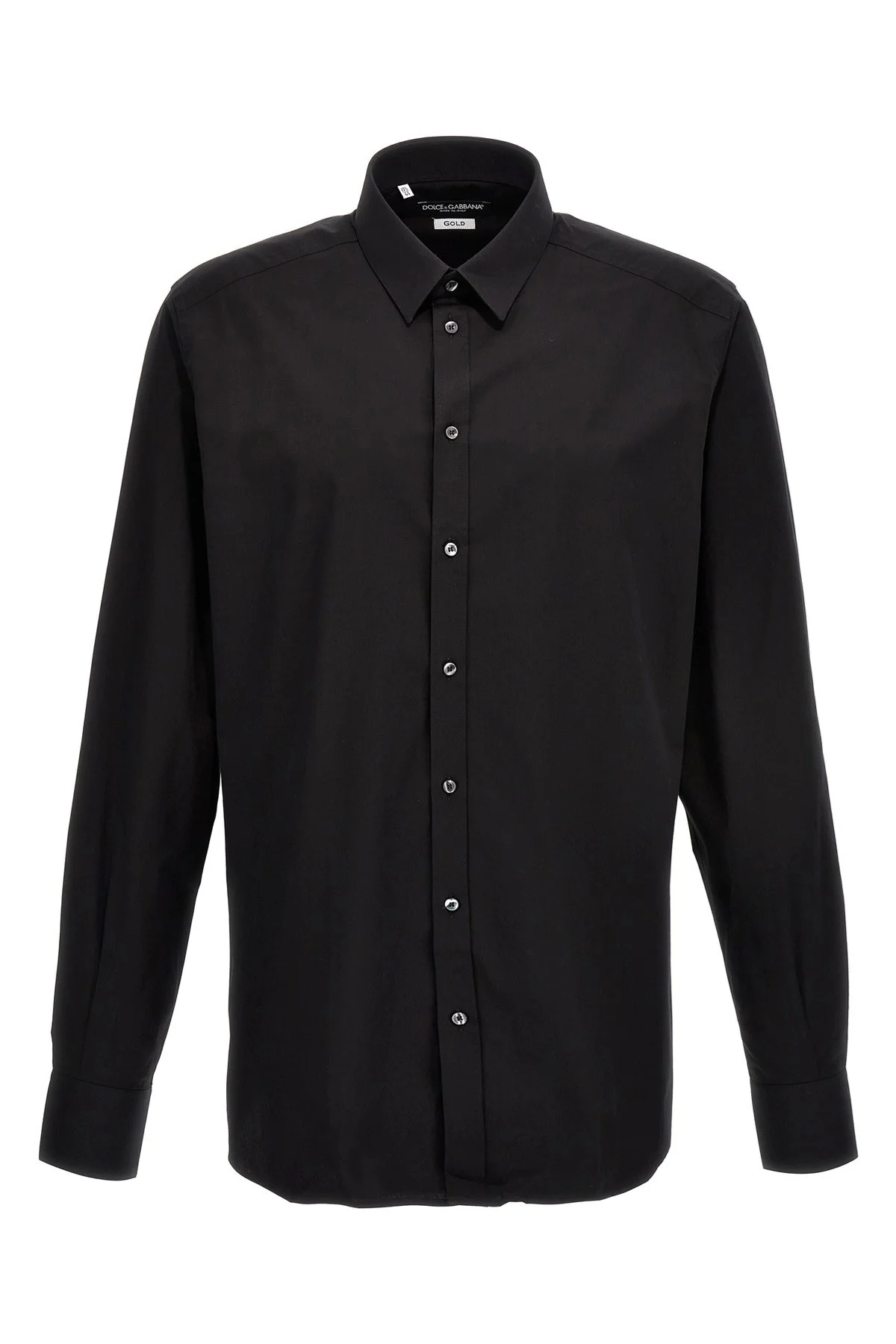 cod. G5EJ0TGG826N0000 DG Essential stretch cotton shirt with button closure, long cuffed sleeves. Color: Black Size & Fit: Slim fit collar size Composition: 97% cotton 3% elastane