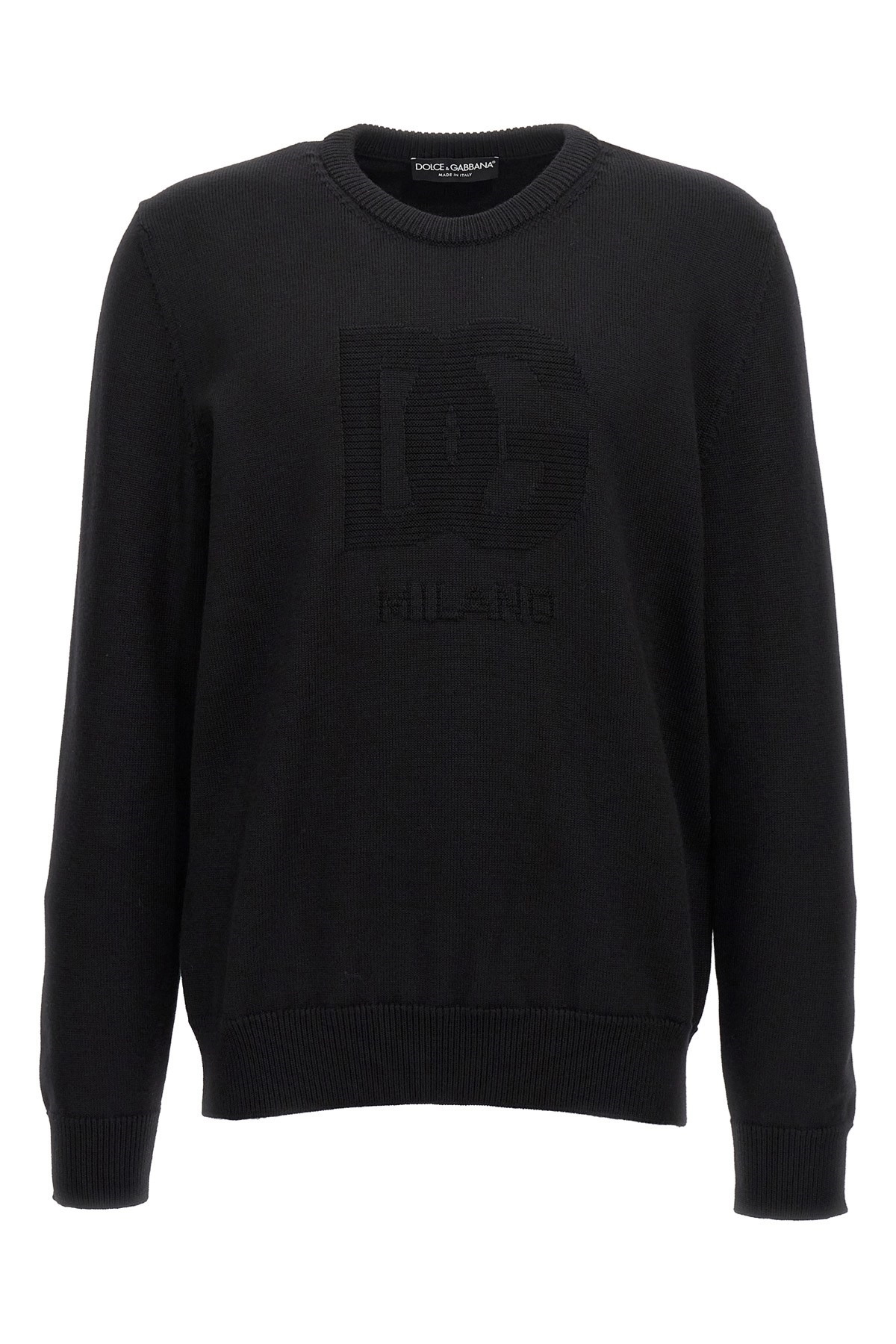 cod. GXX01TJCVYON0000 Wool sweater with front 'DG' intarsia, crew neck, long cuffed sleeves. Color: Black Size & Fit: True to size fit Composition: 100% virgin wool Made in: Italy