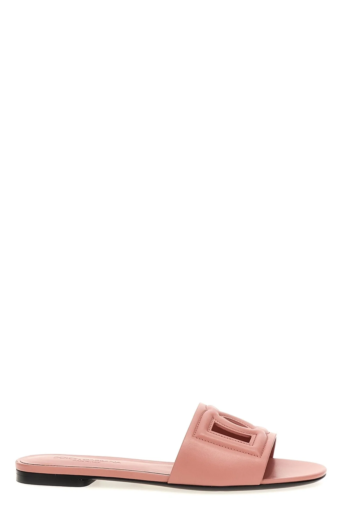 cod. CQ0436AY32980405 Calf leather slides with 'DG' logo at the front, cut-out and leather sole. Color: Pink Size & Fit: EU WOMEN Composition: 100% calfskin leather (Bos Taurus) Made in: Italy