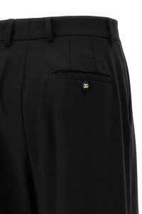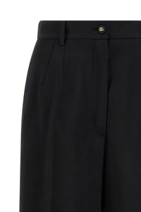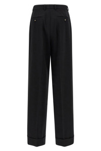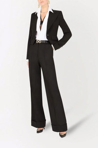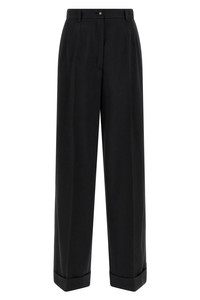 cod. FTBM0TFUBAJN0000 Stretch wool canvas trousers, 'Dolce' high waist, wide and straight leg, pleats, stretched pleat, zip hook and front button closure, pockets, turn-up on the leg bottom. Color: Black Size & Fit: true to size fit Composition: 99% virgin wool 1% elastane Made in: Italy