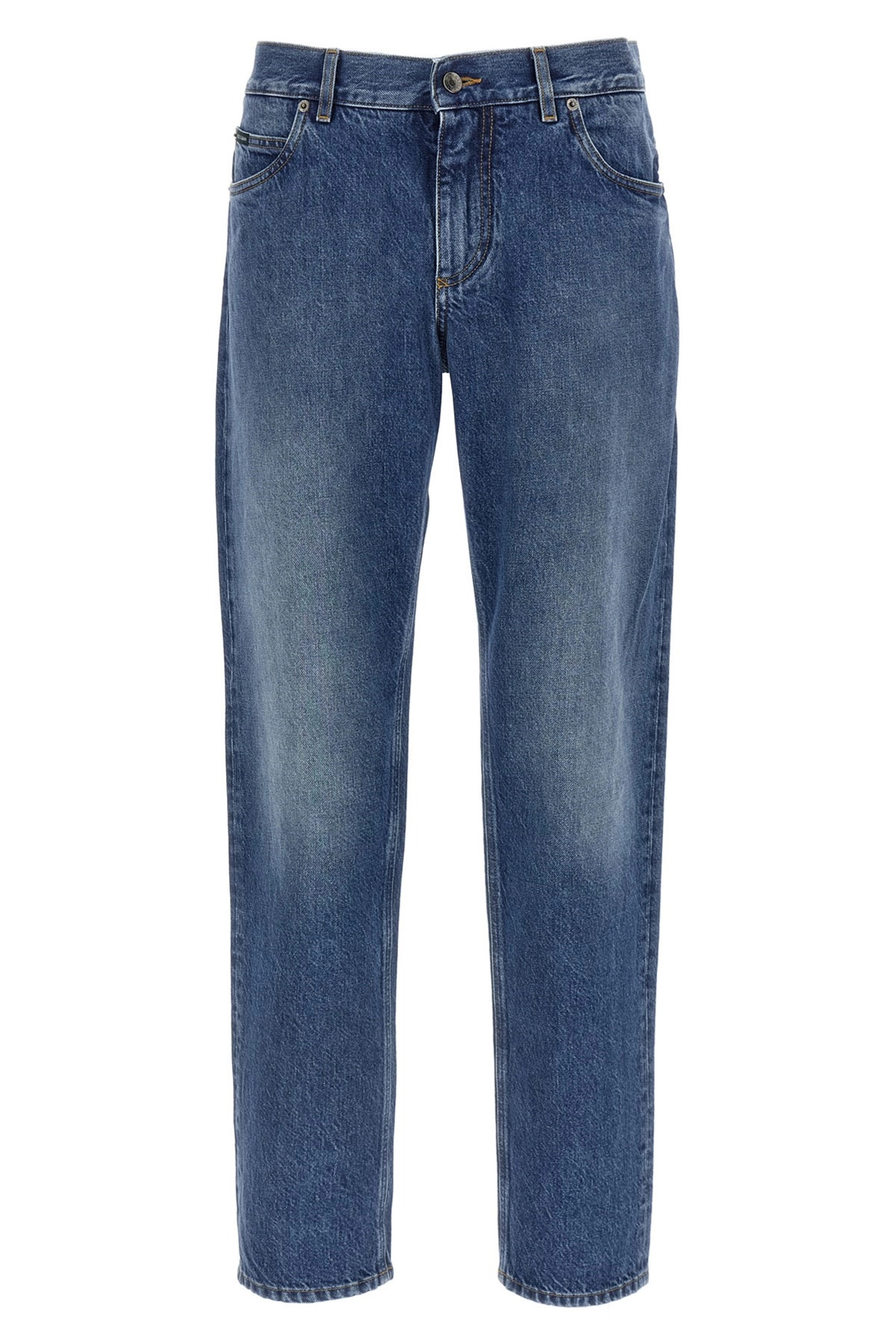 cod. GYJCCDG8NU9S9001 'Essential' stonewashed stretch cotton denim jeans with straight leg, front zip and button closure, five pockets, metal logo plaque on the back. Color: Blue Size & Fit: true to size fit Composition: 100% cotton Made in: Italy