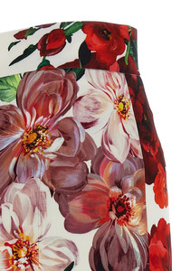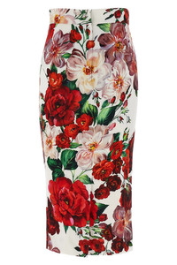 cod. F4BCATFSIB4HA5PD Longuette skirt in stretch viscose charmeuse with floral print, high waist model, stretch silk crepe de chine lining, zip closure and back split. The differences in print placement you might find on this product is a characteristic of Dolce&Gabbana's Handmade products. A peculiarity that makes each garment or accessory unique and exclusive. Color: White Size & Fit: true to size fit Composition: 96% viscose, 4% elastane Made in: Italy