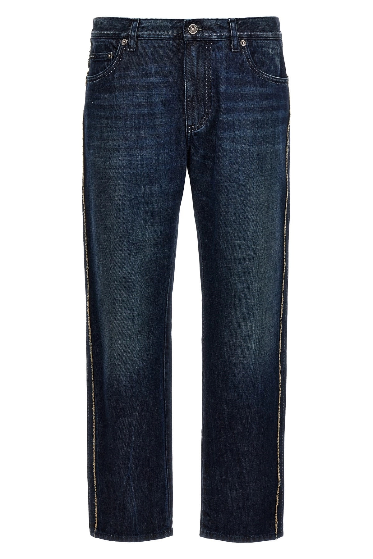 Fringed stitching jeans