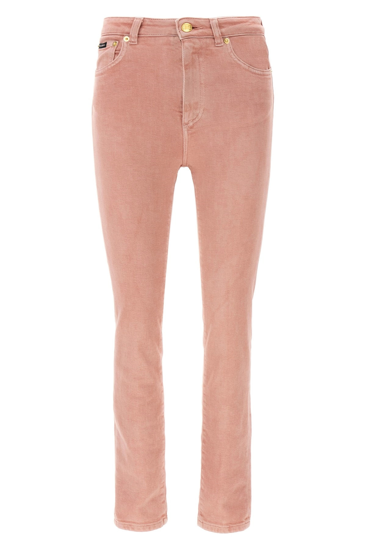 cod. FTC67DG8MT4S9001 Garment-dyed stretch cotton denim jeans with high waist, zip and button closure, five pockets, leather and metal logo plaque at the back. This fabric has been treated with artisanal techniques to achieve the worn look that distinguishes it. It is impossible to guarantee its homogeneity. In addition, the appearance of the product may vary over time. Color: Pink Size & Fit: Skinny fit Composition: 98% cotton, 2% elastane Made in: Italy