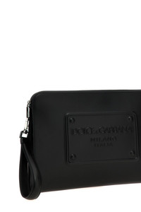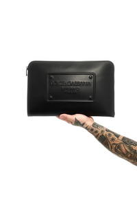 cod. BM2276AG21880999 Large calf leather pouch with Dolce&Gabbana Milano logo plate with a three-dimensional effect, zip closure, removable handle. Color: Black Size & Fit: W 37 x H 24 x D 3 cm Composition: 100% calfskin leather (Bos Taurus) Made in: Italy