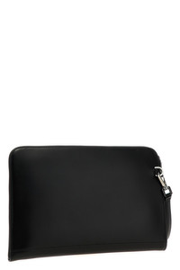 Large calfskin pouch with raised logo