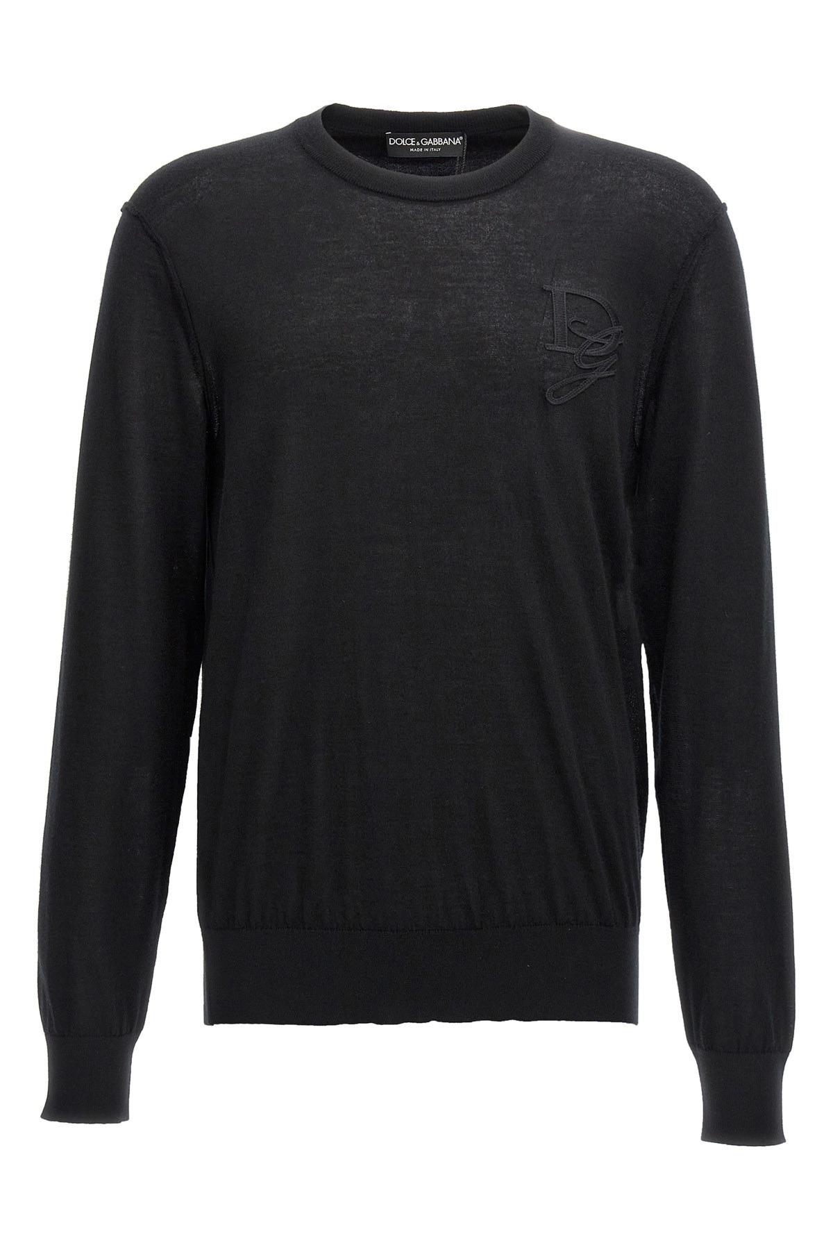 cod. GXX02ZJAWXRN0000 Cashmere sweater with front embroidered logo, crew neck, long cuffed sleeves. Color: Black Size & Fit: true to size fit Composition: 100% cashmere Made in: Italy