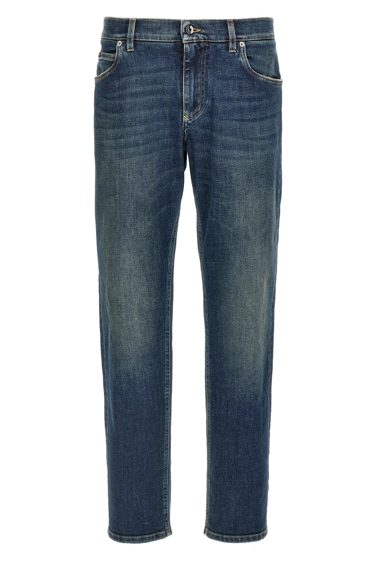 cod. GYJCCDG8GW9S9001 Delave cotton denim jeans, zip and button closure, five pockets, straight leg, leather and metal logo plaque at the back. Color: Blue Size & Fit: true to size fit Composition: 98% cotton, 2% elastane Made in: Italy