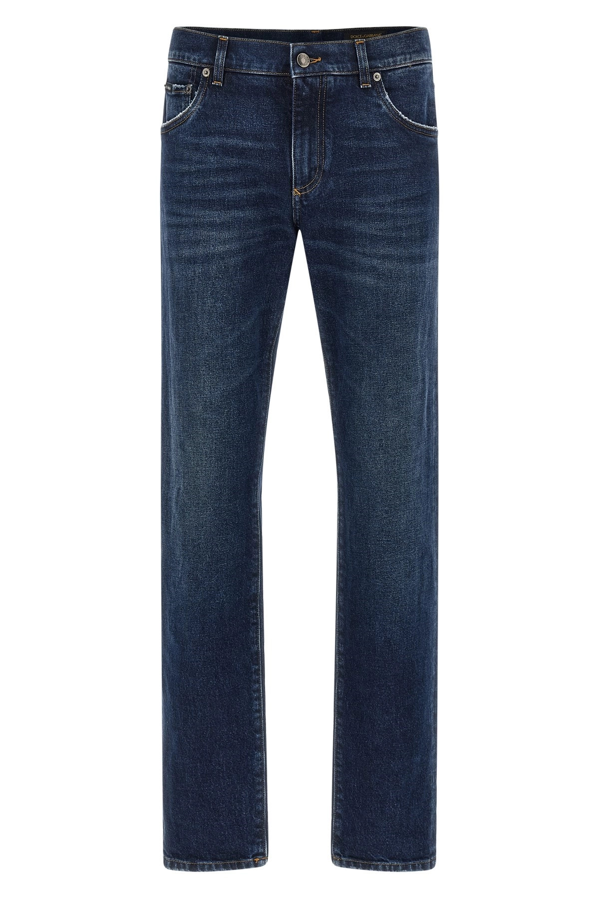 cod. GY07CDG8OE8S9001 Used-effect stonewashed cotton denim jeans, contrast stitching, low waist, front zip and button closure, five pockets, leather patch with metal plaque and back engraved logo. Color: Blue Size & Fit: Slim fit Composition: 100% cotton Made in: Italy