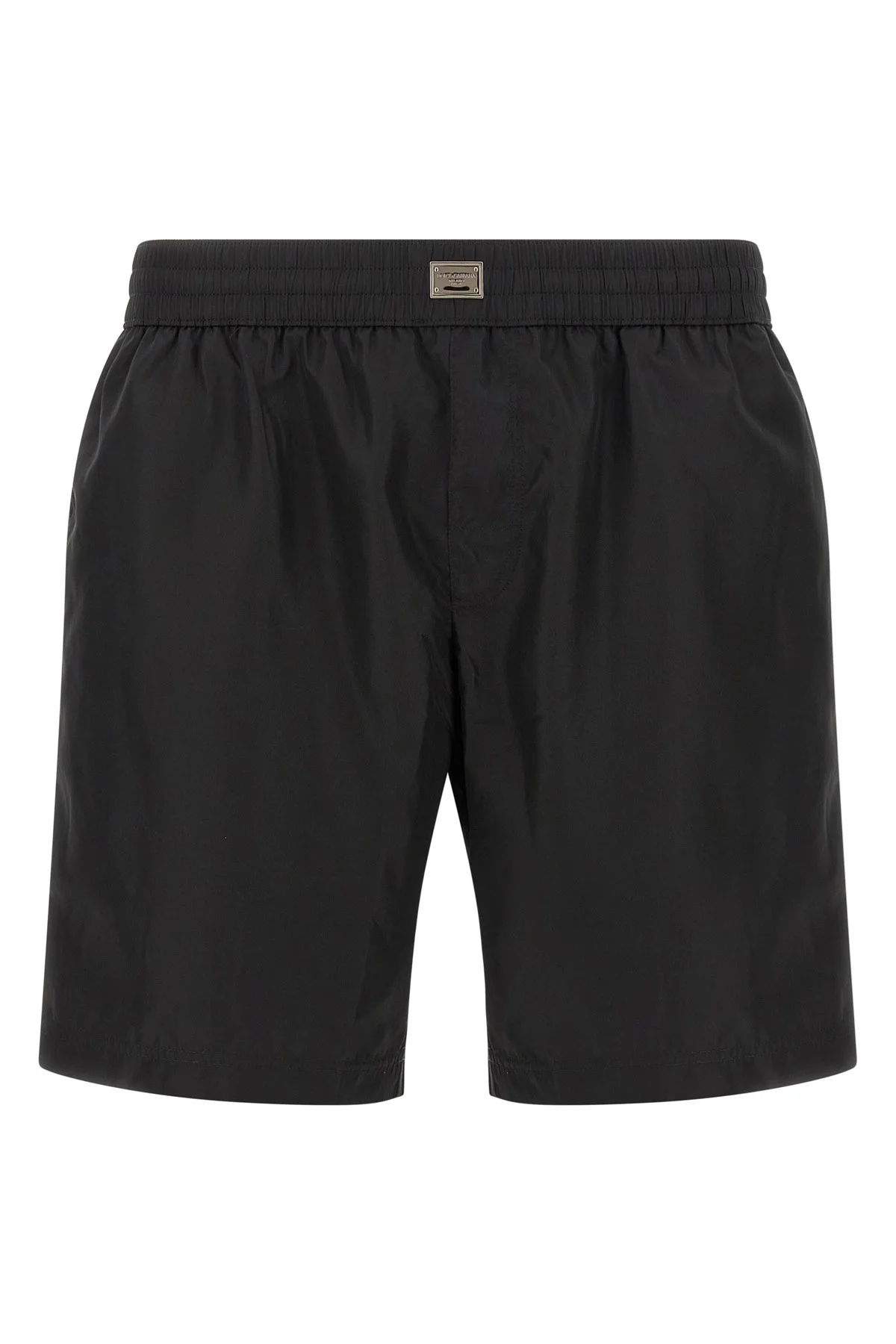 cod. M4F36TONR46N0000 Light nylon swimsuit, medium model, metal plate with front engraved logo, adjustable drawstring elastic at the waist, trompe l'oeil flap, pockets, inner briefs. Color: Black Size & Fit: true to size fit Composition: 88% polyamide, 12% elastane Made in: Italy