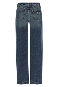 cod. FTDDFDG8NV3S9001 Washed cotton denim jeans, contrast stitching, low crotch, wide and straight leg, front zip and button closure, five pockets, leather and metal tag with the engraved back. Color: Blue Size & Fit: true to size fit Composition: 100% cotton Made in: Italy