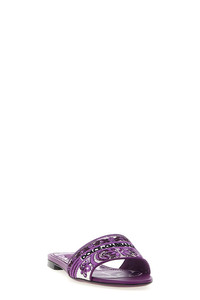 cod. CQ0571AV804I03TN Nappa slides with 'Maiolica' embroidery flush on the band, leather sole. Color: Purple Size & Fit: EU WOMEN Composition: 77% cotton, 23% lamb leather Made in: Italy