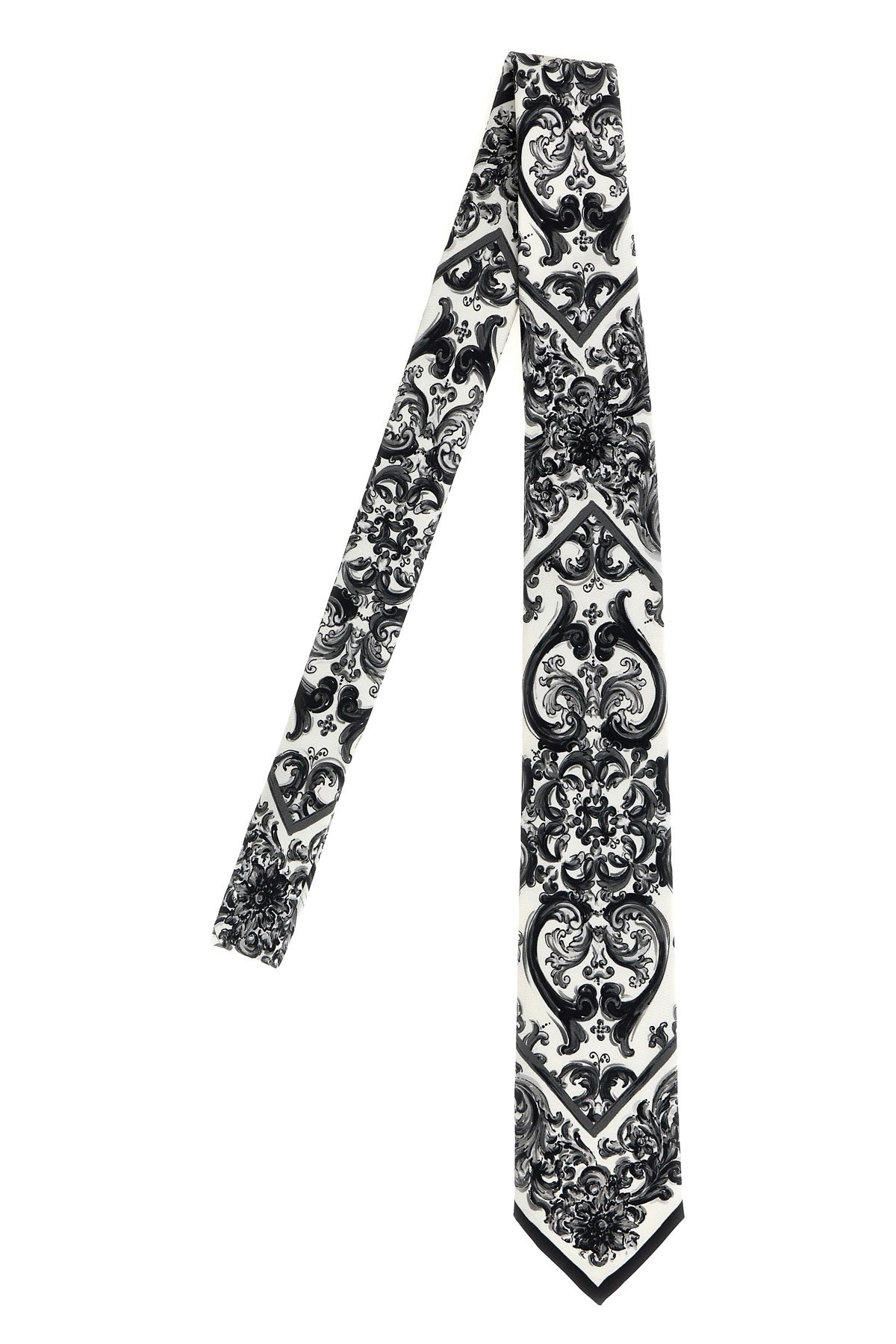 cod. GT147EG0WV7HX5DQ 'Maiolica' print silk twill tie. The differences in print placement you might find on this product is a characteristic of Dolce&Gabbana's Handmade products. A peculiarity that makes each garment or accessory unique and exclusive. Color: White/Black Size & Fit: One size Composition: 100% silk Made in: Italy
