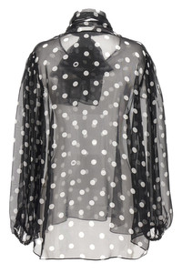 cod. F778TTIS1VHHNZRW 'Mambo' blouse in silk chiffon with polka dot print, scarf at the neck, long sleeves. Color: White/Black Size & Fit: true to size fit Composition: 100% silk Made in: Italy