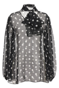 Chiffon pussy-bow blouse with polka-dot print