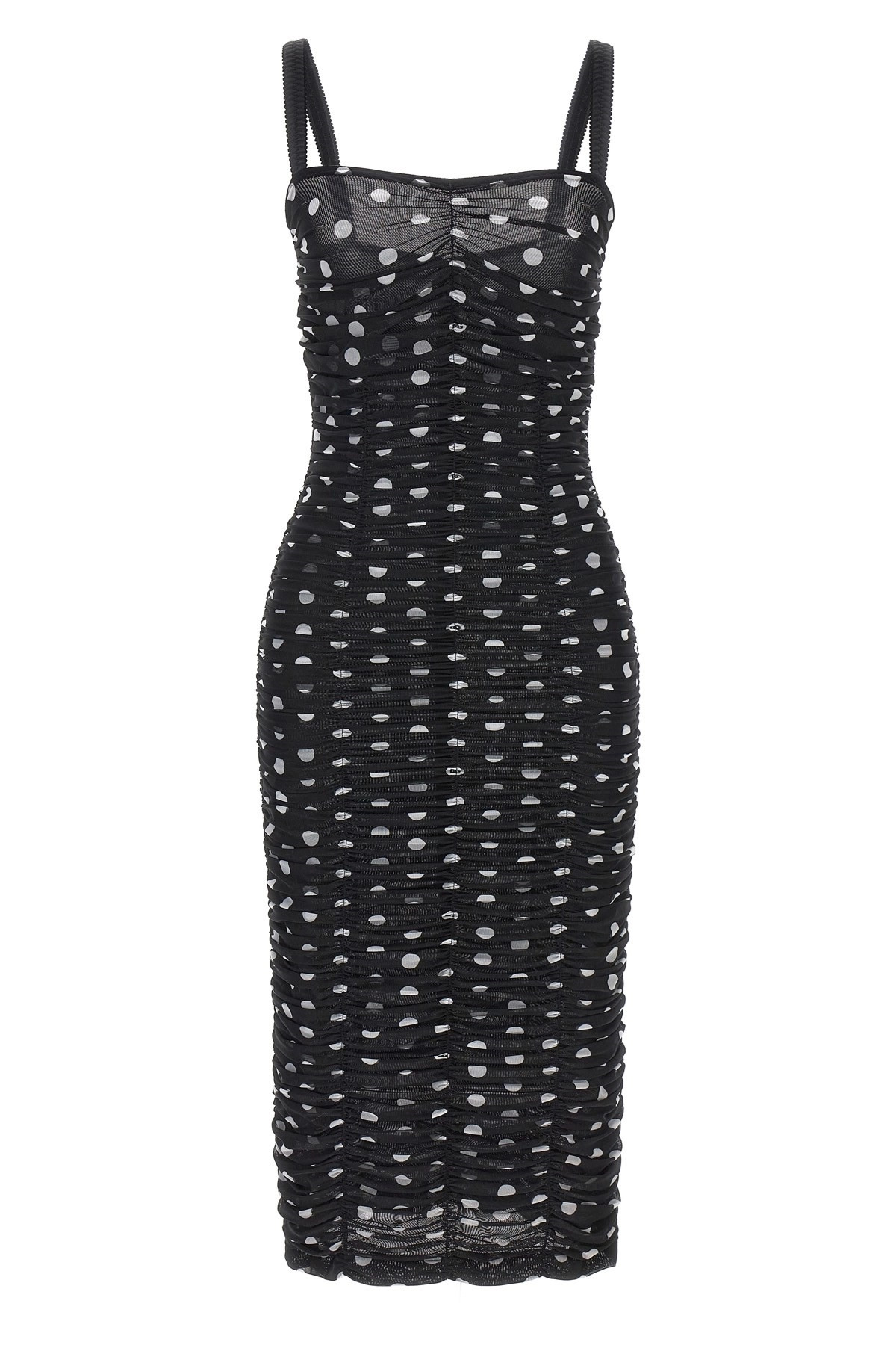 cod. F6JHXTFSRP7HNZRW Mambo Longuette pencil dress in polka dot print tulle with square neckline, adjustable straps, and back zipper closure. Color: White/Black Size & Fit: true to size fit Composition: 87% polyamide 8% elastane 5% silk