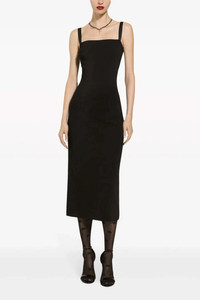 cod. F6ARTTFUGN7N0000 Milano stitch stretch jersey dress with square neckline, adjustable elastic straps, back zip closure, back slit. Color: Black Size & Fit: true to size fit Composition: 65% viscose 25% polyamide 5% elastane 5% silk
