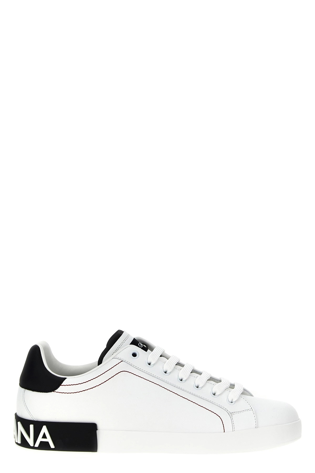 cod. CS2216AH52689697 'Portofino' leather lace up sneakers with contrast logo at the back, contrast heel tab, and a rubber sole. Color: White/Black Material: 100% leather Made in: Italy Size&Fit: EU MAN