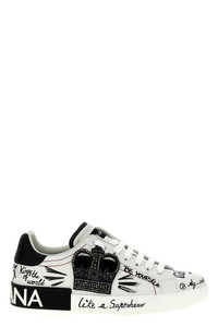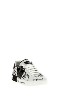 cod. CS1760A9AG189697 'Portofino' leather sneakers with hand-painted lettering and side jewel detail, lace-up closure, logo rubber sole. Color: White/Black Size & Fit: EU MEN Composition: 100% calfskin leather (Bos Taurus) Made in: Italy